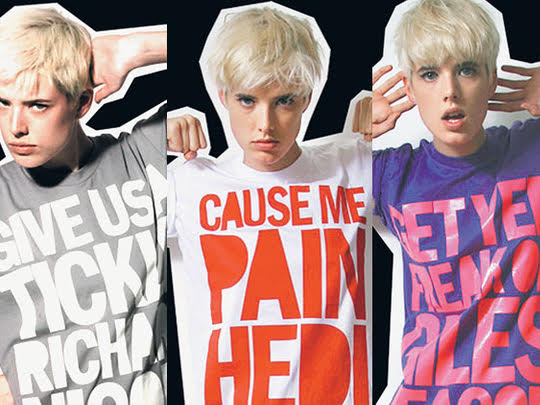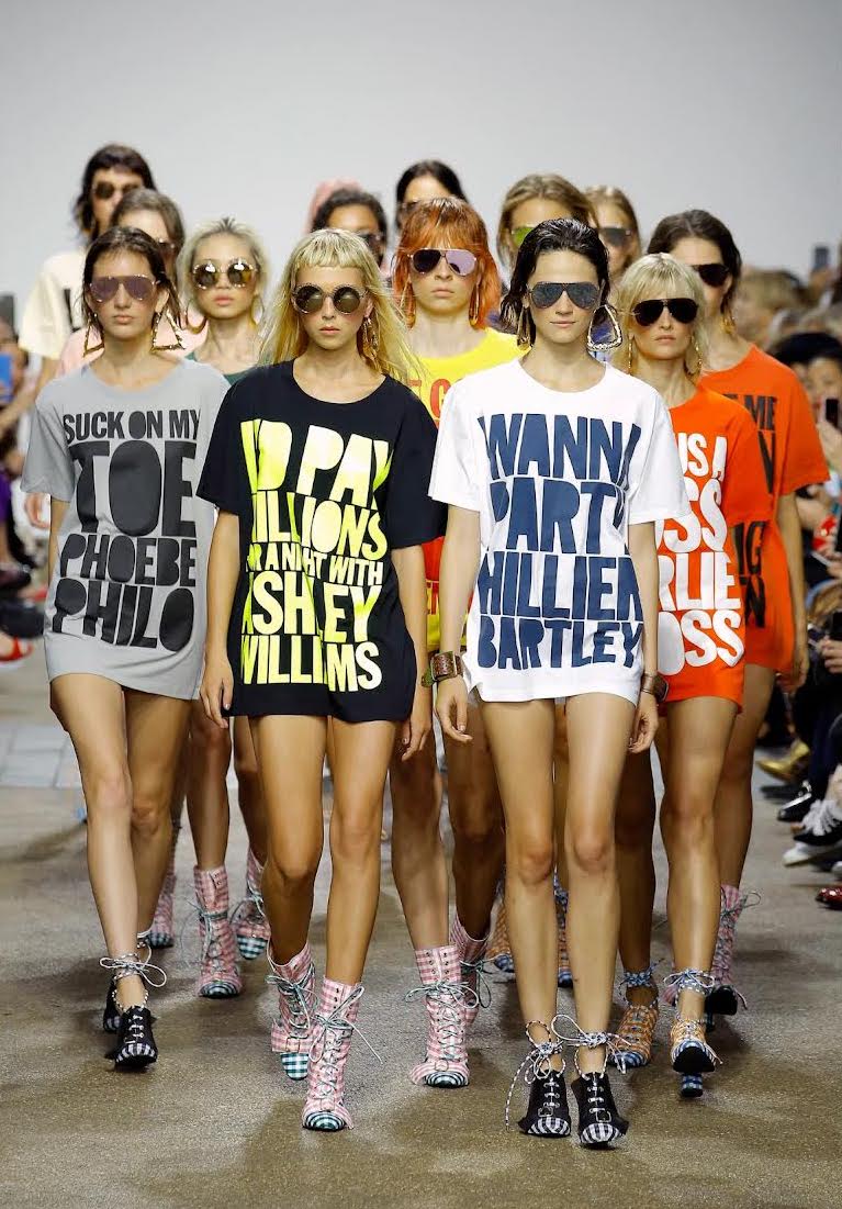 H: That's a really interesting question. I initially had no plans to do anything other than t-shirts, and then Lulu Kennedy invited me to join Fashion East. She was like, I want to do something with your t-shirts, maybe a show? And I was like, oh my god. To me, Fashion East was serious, it was real fashion shows. I used to go to Gareth Pugh shows and sit on the floor. The fashion t-shirts were called fashion groupie t-shirts because I was a fashion groupie. It was my way of creating a football shirt or a band t-shirt for these young designers that I idolized. In my sort of insatiable ambition, I wanted to do everything there and then. So the first collection that included more than t-shirts was Fashion East, I did some sunglasses with Linda Farrow, and I did bags with Mulberry and Stuart Vevers. I did footwear, I did denim. I did dresses. I did swimwear. I really went to town.